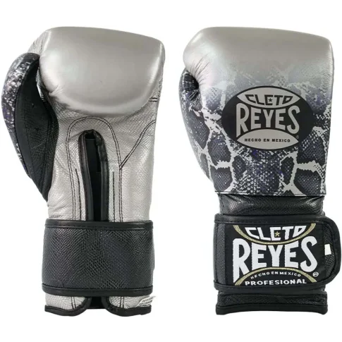 Cleto Reyes Boxhandschuhe Velcro Sparring Gloves Snake Print Silver