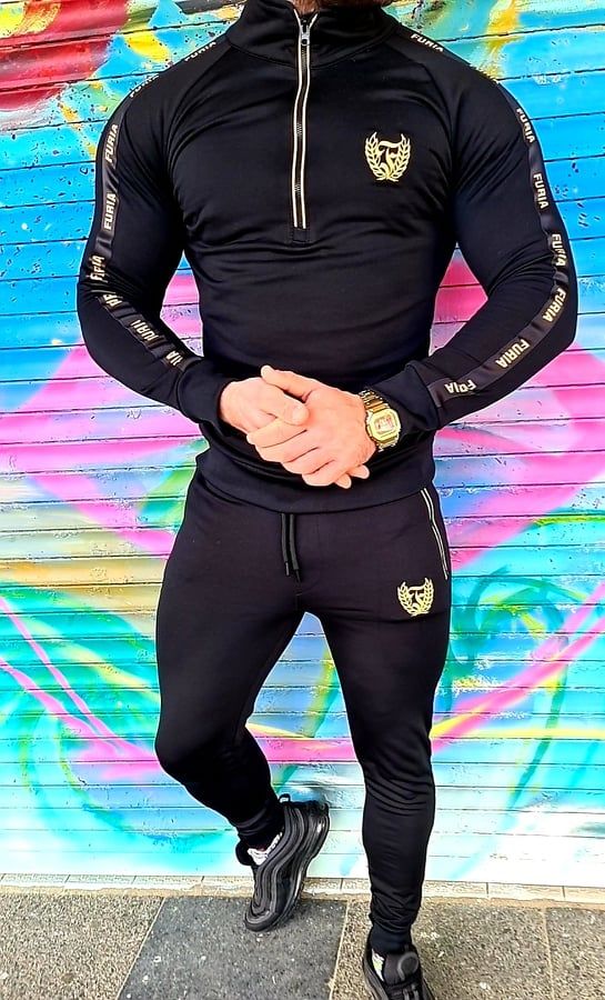 FURIA Trainingsanzug Set für Herren Neues Logo Band Black/Gold