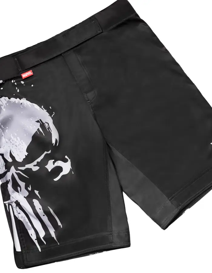 Die Iron Man Fight Shorts bieten dank Klettverschlüssen an der Vorderseite und einem verstellbaren Bund eine individuelle Passform.