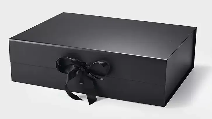 Schwarze Geschenkbox mit Magnetverschluss und Schleife - Luxus-Geschenkverpackung