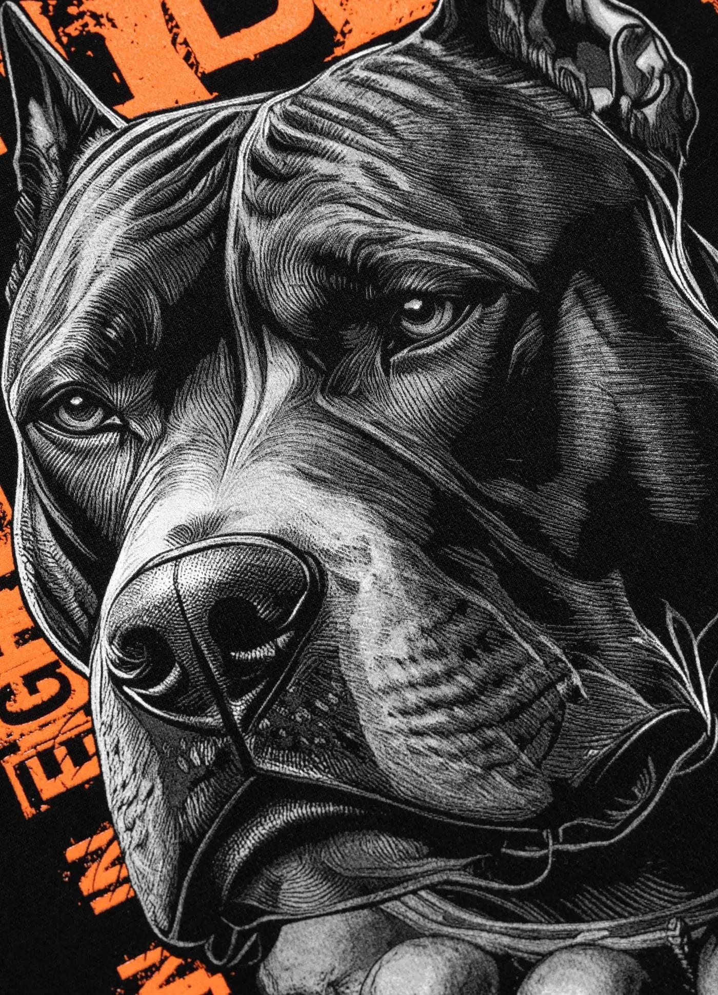 Pitbull-Aufdruck auf der Brust – Die Aufdrucke werden mit einer speziellen Siebdrucktechnik hergestellt, wodurch sie sehr haltbar und abriebfest sind