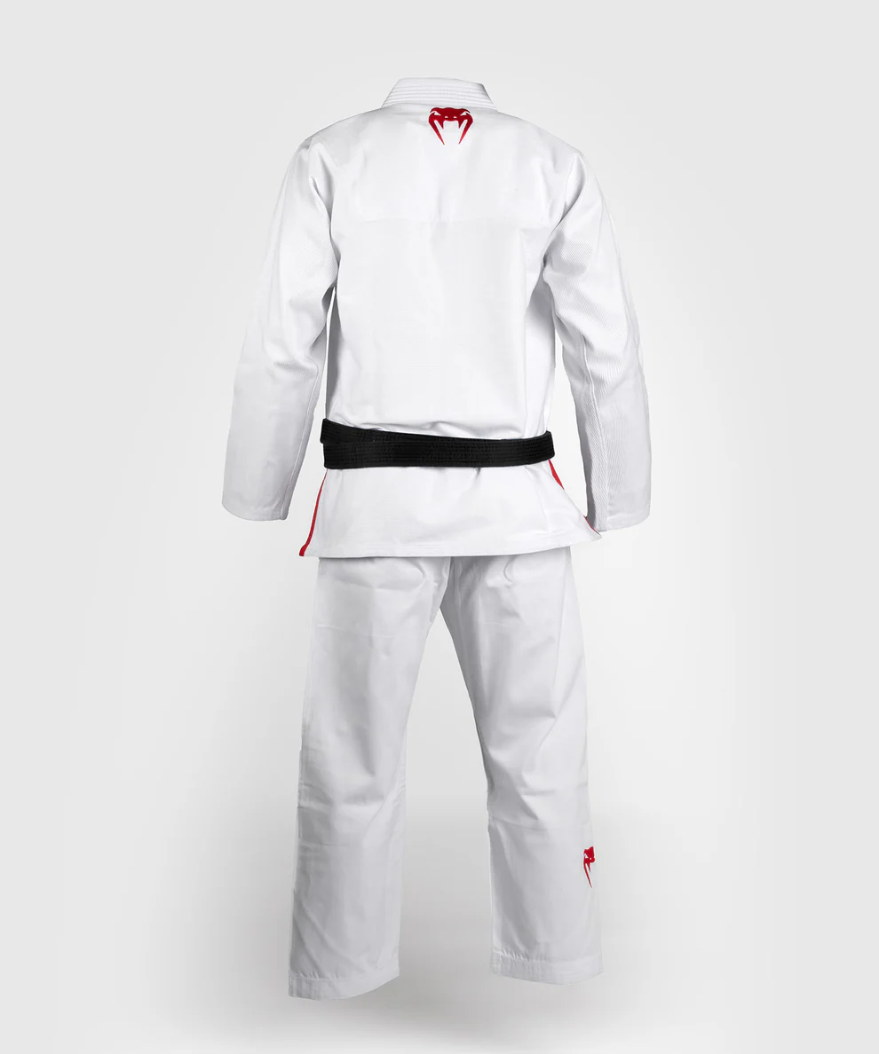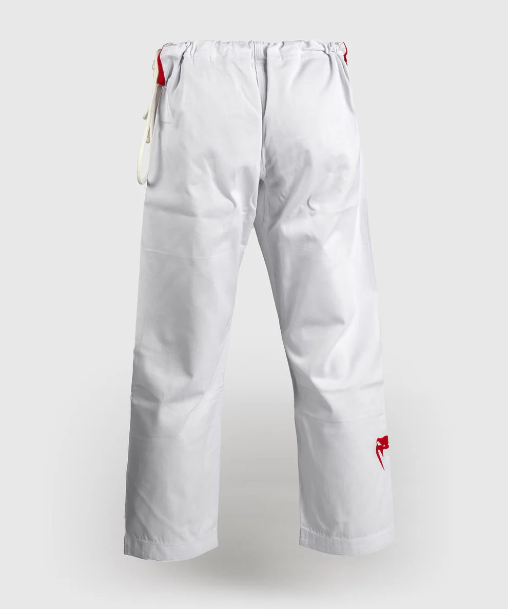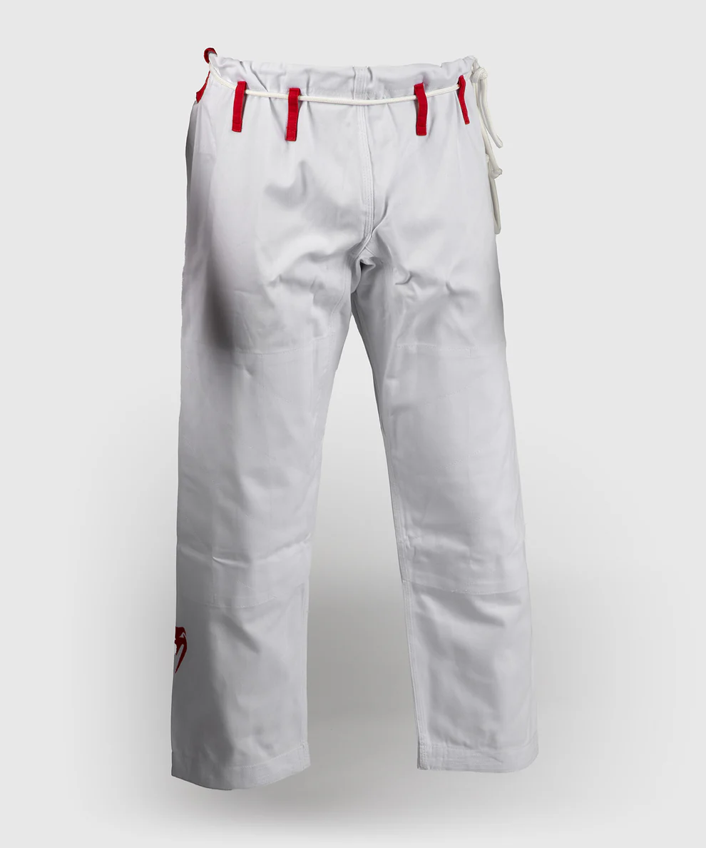 Heben Sie sich auf der Matte mit dem großen Venum-Logo ab, das auffällig auf der Rückseite der Jacke angebracht ist. Dieses Gi ist der perfekte Begleiter für Ihr regelmäßiges Training. Los geht's.