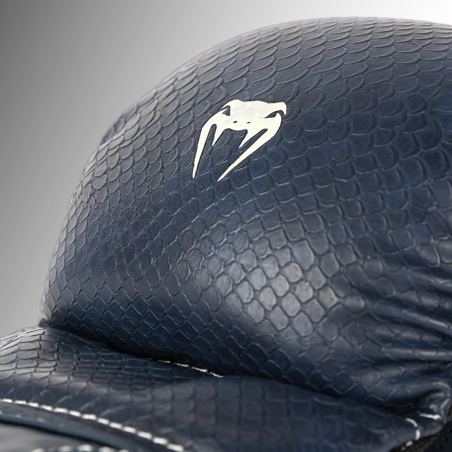 beigen Nähte greifen die anatomische Konstruktion der Handschuhe auf und bilden einen subtilen Kontrast. Die strukturierten Schuppen auf der Oberfläche erinnern daran, dass man mit Venum hart und schnell zuschlagen muss.