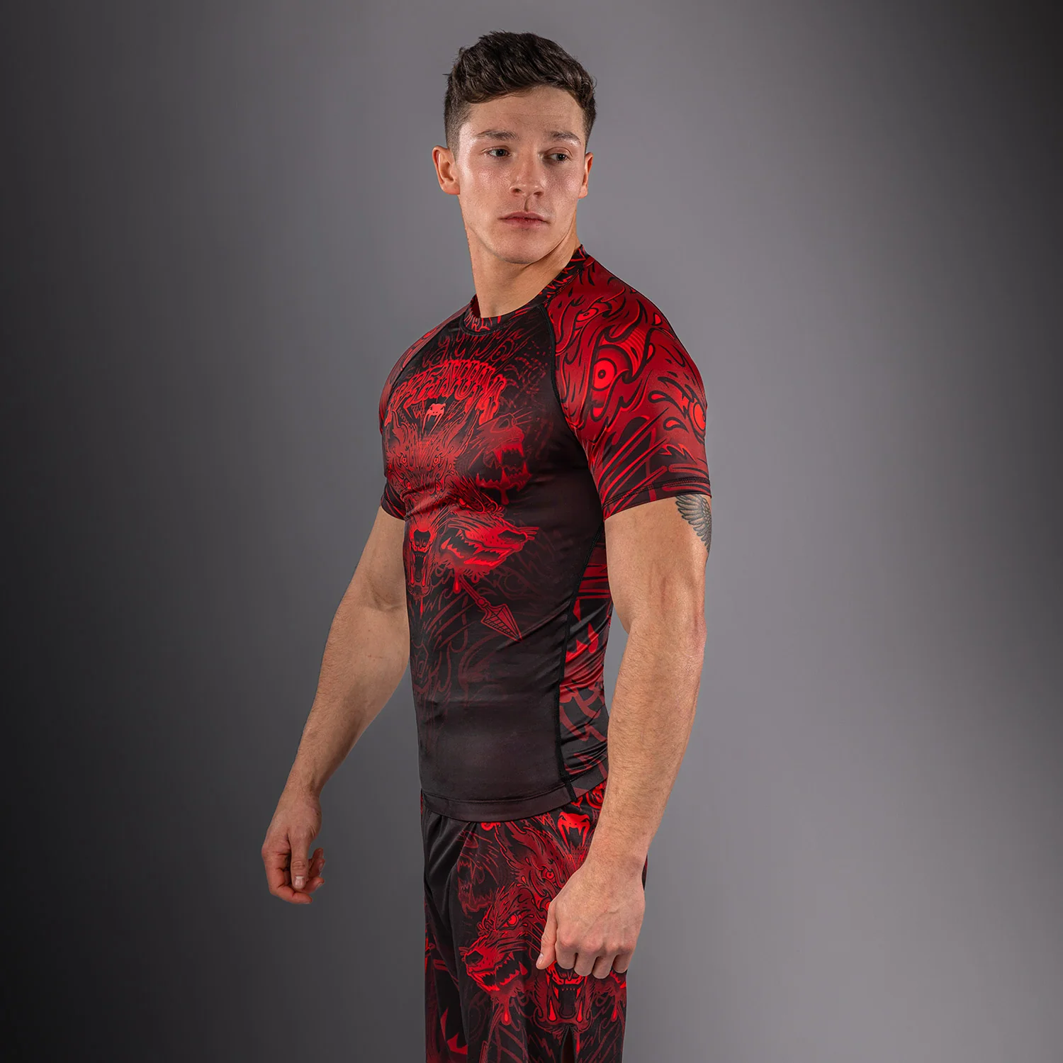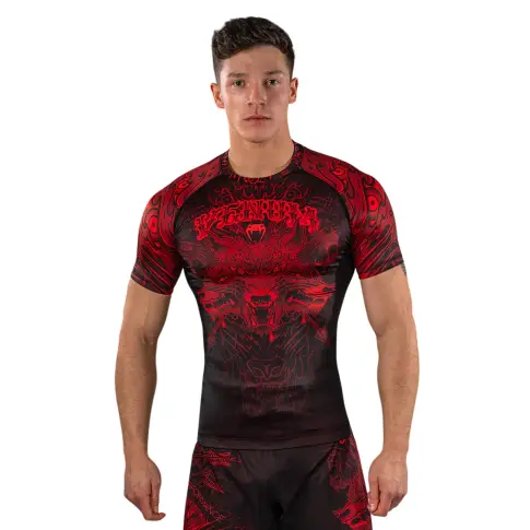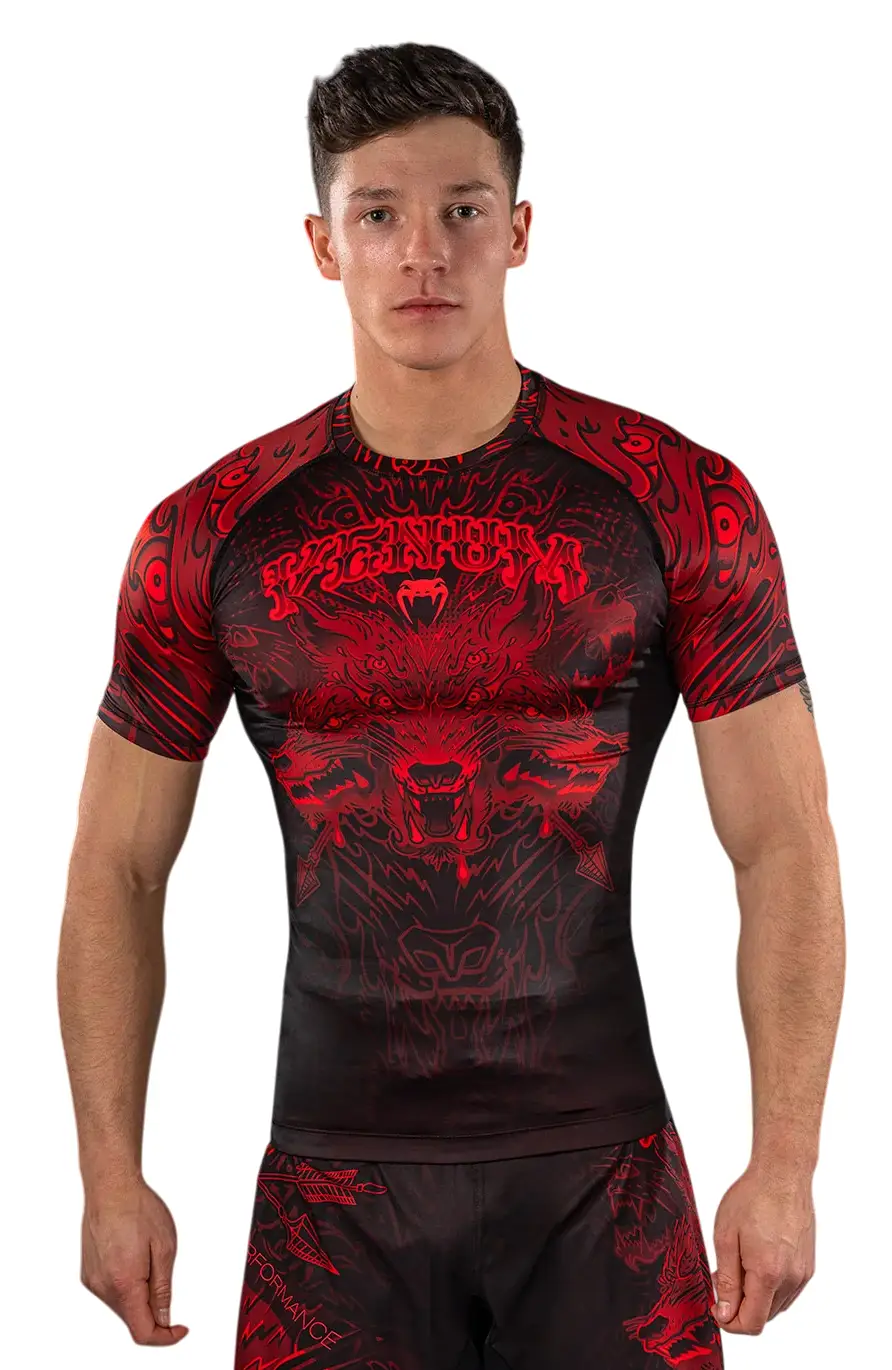 Venum Rashguard Kurzarm Short Sleeve Wolf Atak Schwarz/Rot